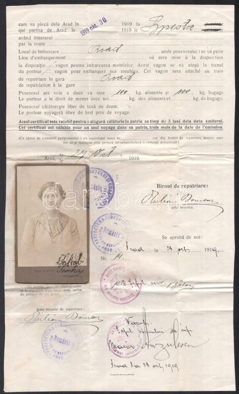 1919 Arad, újrahonosítási igazolvány https://www.darabanth.com/hu/416-Gyorsarveres/416.0/Mutargy-papirregiseg-egyeb/Okmanyok~500018/1919-Arad-ujrahonositasi-igazolvany~II2622468