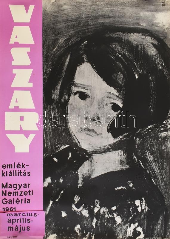 1961 Vaszary emlékkiállítás. Magyar Nemzeti Galéria. Plakát, ofszet, papír. A kiállítás időtartama ráragasztott papírlappal módosítva. 49,5x67,5 cm. Feltekerve.