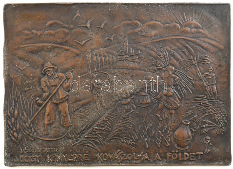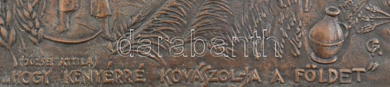 Leírás: Fekete Géza (Dezső) (1939-2021): ..hogy kenyérré kovászolja a földet. József Attila. Bronz dombormű. Jelzett. 29x21 cm