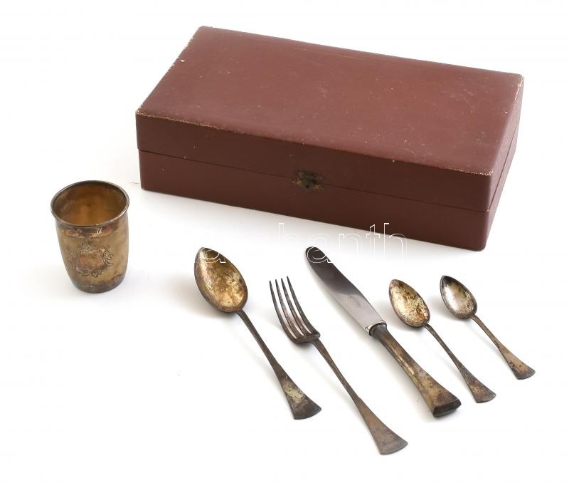 Leírás: Ezüst (Ag) keresztelőkészlet díszdobozban, jelzett, nettó: 158g