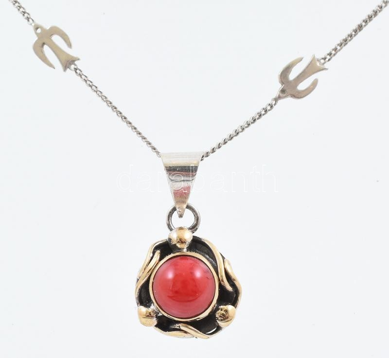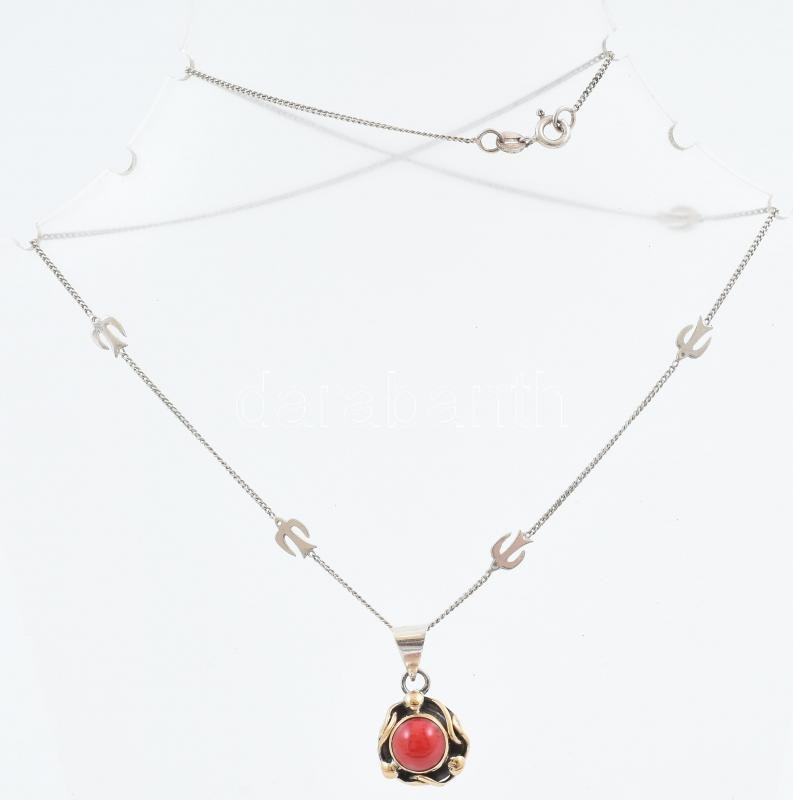 Leírás: Ezüst(Ag) nyaklánc, korallal díszített medállal, jelzett, h: 48 cm, bruttó: 6,4 g