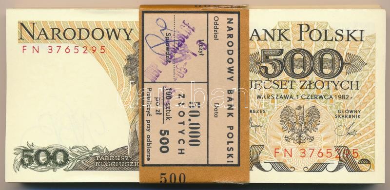 Lengyelország 1982. 500Zl (90x) eredeti kötegelővel, közte sorszámkövetők T:I-II Poland 1982. 500 Zlotych (90x) with original wrapper and some consecutive serials C:UNC-XF