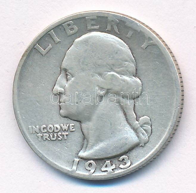 USA 1943S 25 Cen... https://www.darabanth.com/hu/416-Gyorsarveres/416.0/Numizmatika/Kulfoldi-fem-es-ezustpenzek~1500013/Amerikai-Egyesult-Allamok-1943S-25c-Ag-T2-2-patina-USA-1943S-25-Cents-Ag-CXF-VF-patina-Krause~II2621991