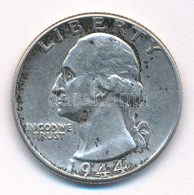 USA 1944. 25 Cen... https://www.darabanth.com/hu/416-Gyorsarveres/416.0/Numizmatika/Kulfoldi-fem-es-ezustpenzek~1500013/Amerikai-Egyesult-Allamok-1944-25c-Ag-T2-2-patina-USA-1944-25-Cents-Ag-CXF-VF-patina-Krause~II2620780