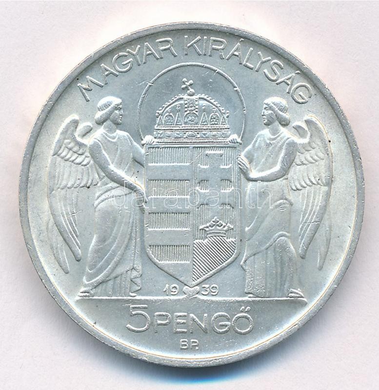 Leírás: 1939. 5P Ag "Horthy balra" T:1-