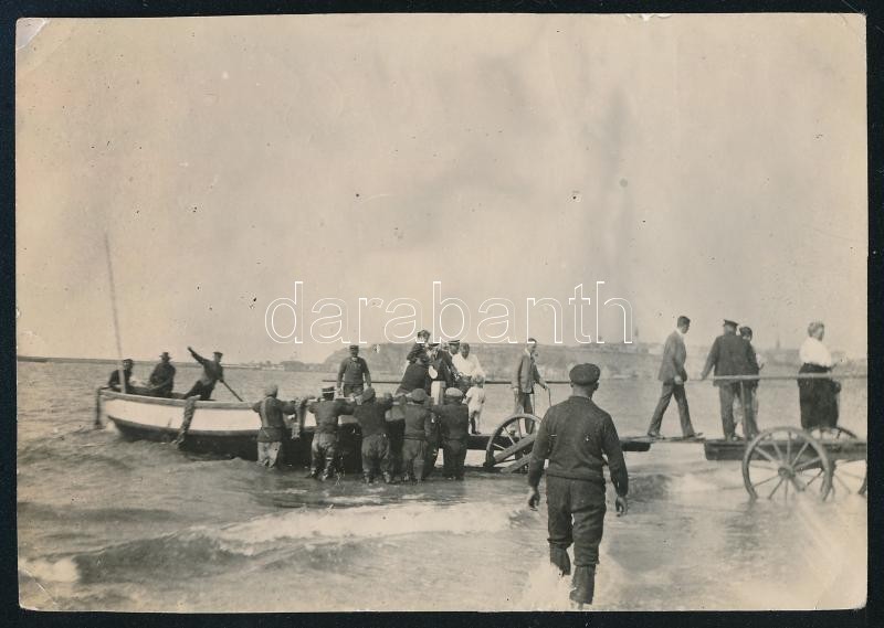 Leírás: 1903 Siófok, kompról leszállók a Balaton partjánál, hátoldalán feliratozott fotó, apró sérüléssel, 10x7 cm