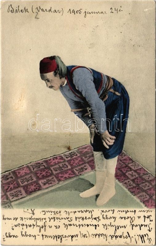 Leírás: 1905 Bosnia, praying man + "K. und K. Milit. Post Bilek"