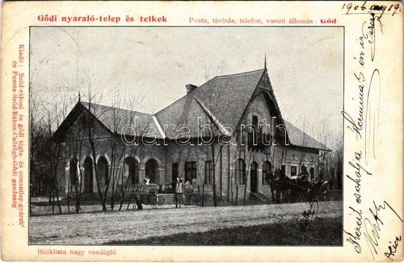 1906 Göd, Nyaralótelep és telkek, Biciklista nagy vendéglő. Kiadó a Sződrákosi és gödi tégla- és cementlap-gyárak és puszta Sződ-Rákos-Csörögh-Gödi gazdaság (EK)
