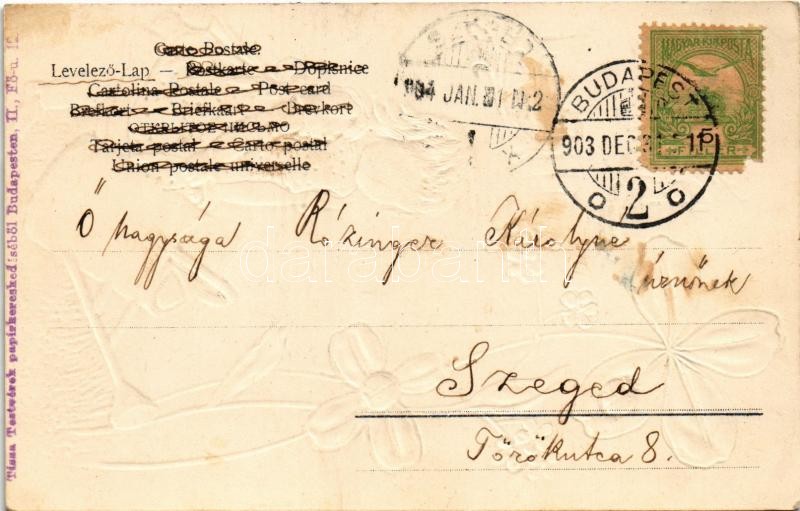 Leírás: 1903 Boldog Újévet! Tisza Testvérek kiadása / New Year greeting, Emb. litho