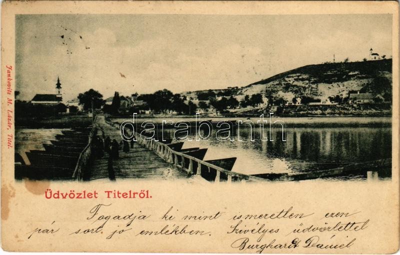 1902 Titel, Hajóhíd. Jankovits M. Lázár kiadása / pontoon bridge (fl) https://www.darabanth.com/hu/417-Gyorsarveres/417.0/Kepeslapok/Vajdasag~1500009/1902-Titel-Hajohid-Jankovits-M-Lazar-kiadasa-pontoon-bridge-fl~II2624359