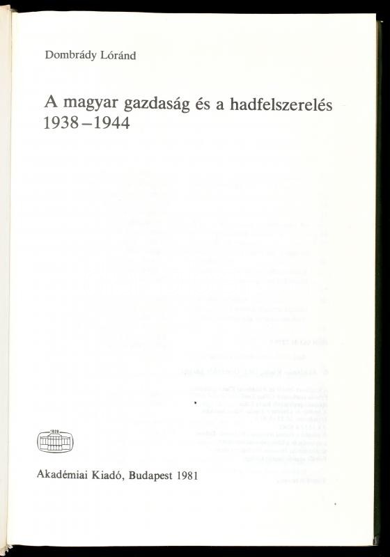 Dombrády Lóránd: A magyar gazdaság és hadfelszerelés. 1938-1944. Bp., ... https://www.darabanth.com/hu/417-Gyorsarveres/417.0/Konyvek/Konyvek-Militaria-Katonasag~500008/Dombrady-Lorand-A-magyar-gazdasag-es-hadfelszereles-1938-1944-Bp-1981-Akademiai-KiadC3~II2629392