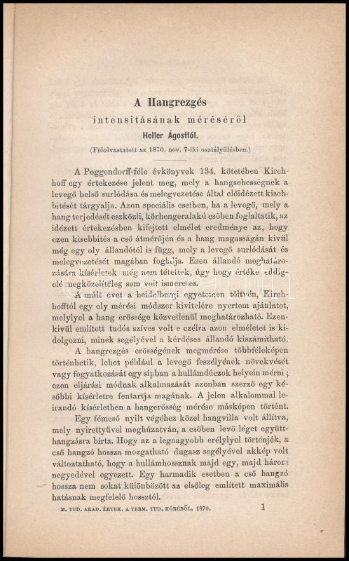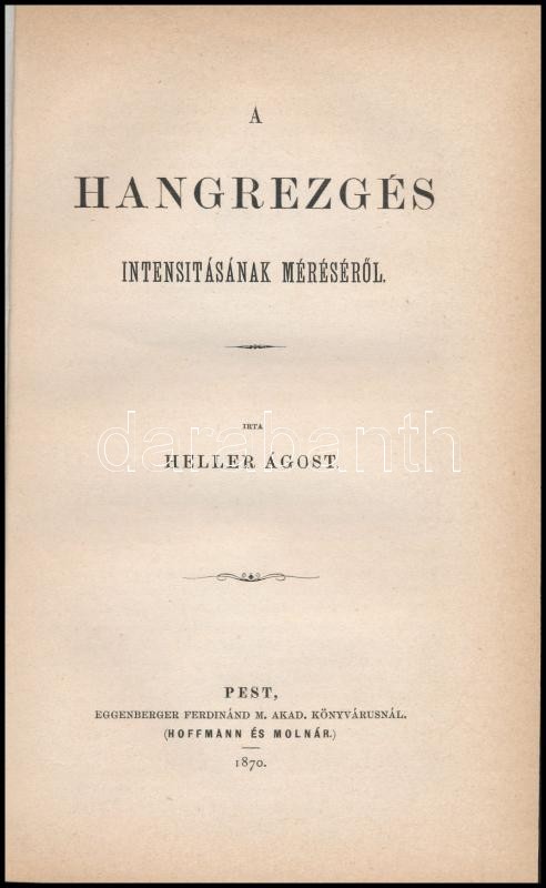 Heller Ágost: A hangrezgés intensitásának méréséről. Pest, 1870. Eggen... https://www.darabanth.com/hu/417-Gyorsarveres/417.0/Konyvek/Konyvek-Termeszettudomany-medicina~500012/Heller-Agost-A-hangrezges-intensitasanak-mereserol-Pest-1870-Eggenberger-10p-Kesobb~II2629859