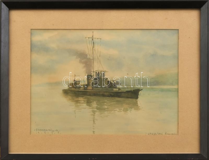 Leírás: Csonkaréti Károly: A Debrecen őrnaszád. Akvarell, papír, Jelzett, üvegezett keretben. 17x23 cm