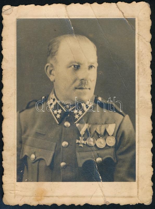 cca 1940 Katonatiszt kitüntetésekkel, fotó, felületén törésnyomok, 8,5... https://www.darabanth.com/hu/417-Gyorsarveres/417.0/Mutargy-papirregiseg-egyeb/Militaria~29/cca-1940-Katonatiszt-kituntetesekkel-foto-feluleten-toresnyomok-8-5C3976-cm~II2628939