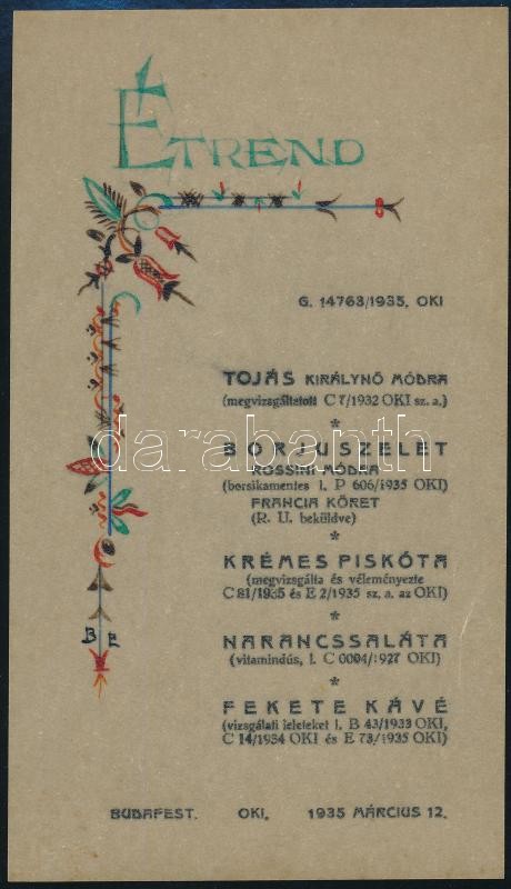 Leírás: 1935 Bp., OKI menükártya