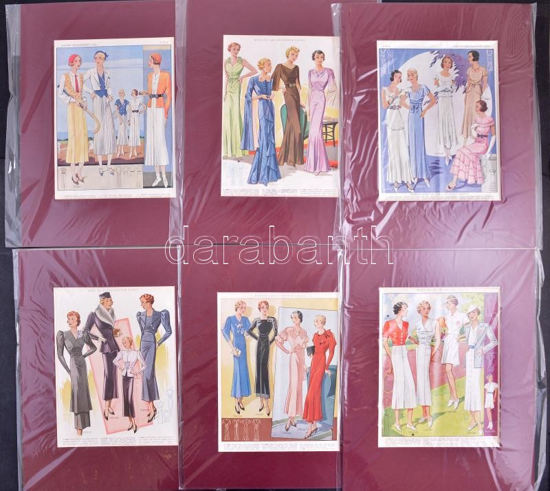 Leírás: 6db magyar úriasszonyok, bordó paszpartuban. 28x20cm