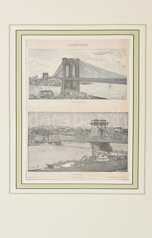 Leírás: Függő hidak, illusztrált melléklet a Pallas Nagy Lexikonából , 29,5x23,5 cm