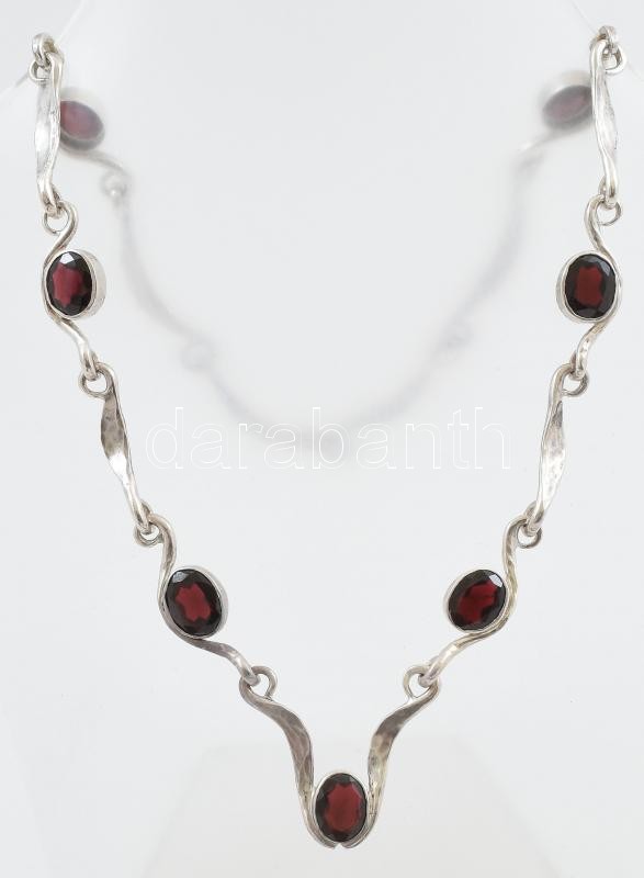 Leírás: Ezüst(Ag) kövekkel díszített nyakék, jelzett, h: 44 cm, bruttó: 39,1 g