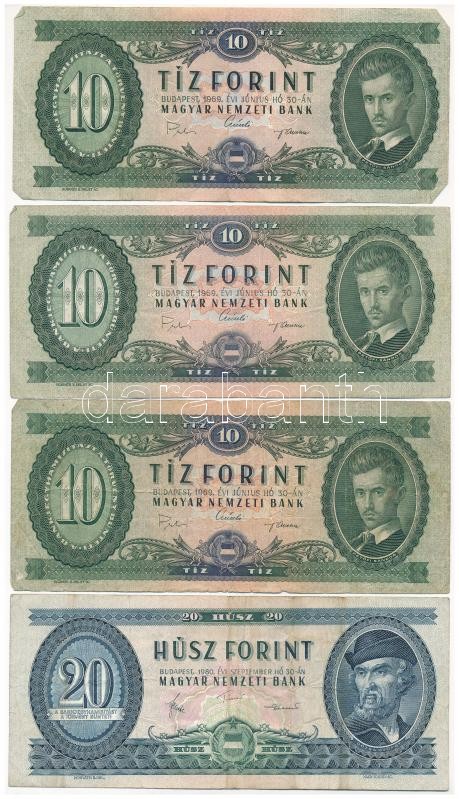Leírás: 1969. 10Ft (3x) + 1980. 20Ft T:III,III-