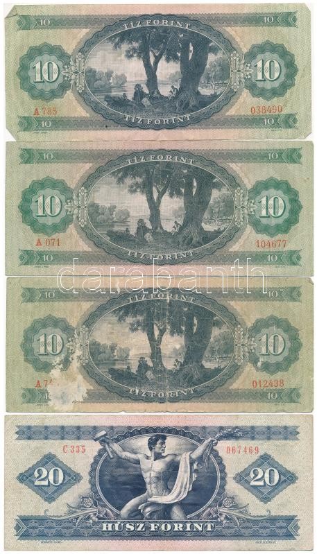 1969. 10Ft (3x) + 1980. 20Ft T:III,III- https://www.darabanth.com/hu/417-Gyorsarveres/417.0/Numizmatika/Magyar-bankjegyek~2000007/1969-10Ft-3x-plus-1980-20Ft-TIII-III-~II2625951