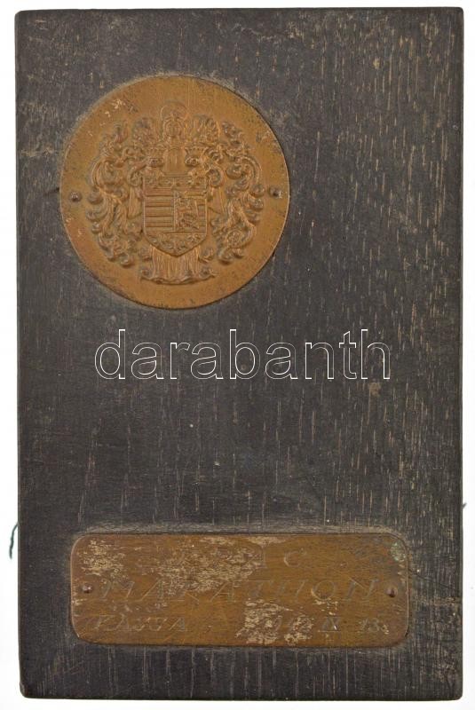 Leírás: 1942. "KRAC - Marathon - Kassa, 1942. IX. 13." Br lemezplakett (60x20mm) + Br lemezérem Kassa város címerével (40mm) fa talapzatra rögzítve (79x123x20mm) T:2-