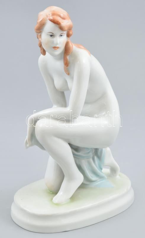 Leírás: Zsolnay térdelő akt, kézzel festett, jelzett, hibátlan, m: 23cm