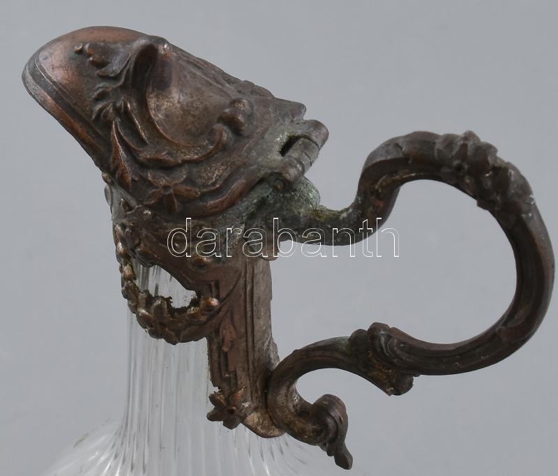Leírás: Antik kiöntő ezüstözött szerelékkel, kopásnyomokkal, m: 22,5 cm