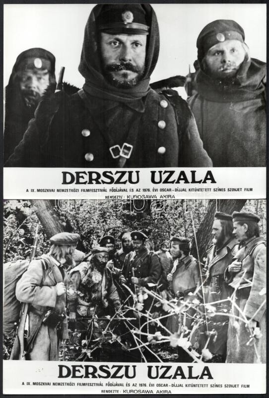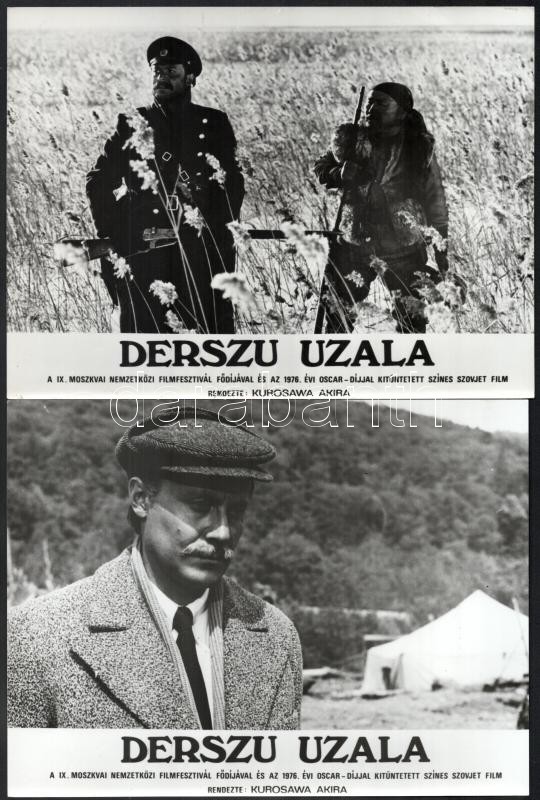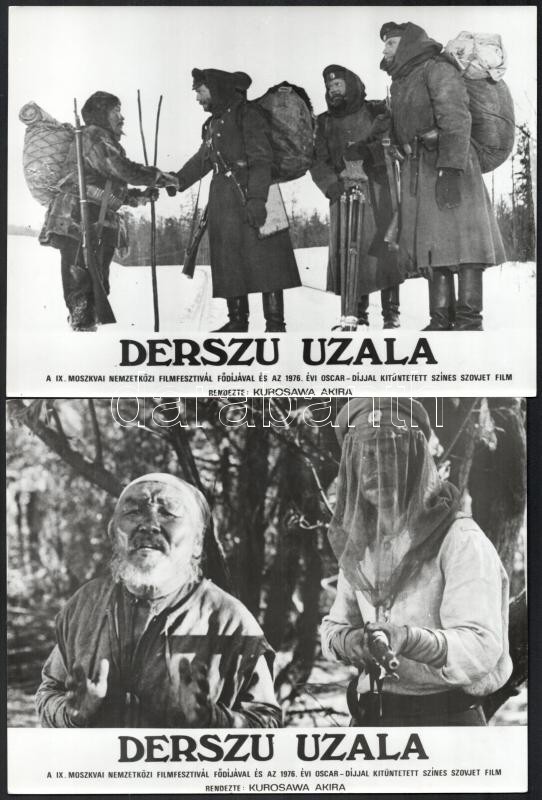 1975 Kurosawa Akira : ,,Derszu Uzala" című szovjet filmjének jelenetei és szereplői, 8 db vintage produkciós filmfotó, ezüst zselatinos fotópapíron, 18x24 cm