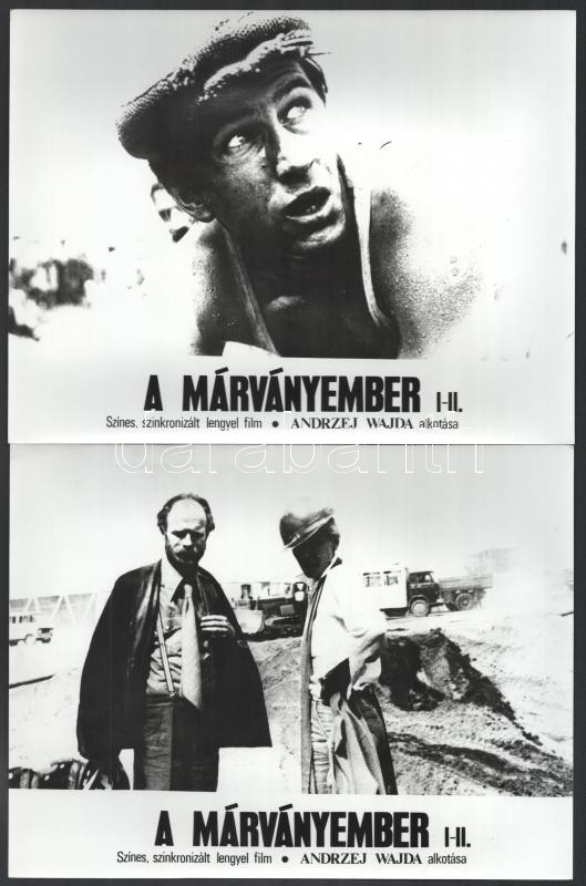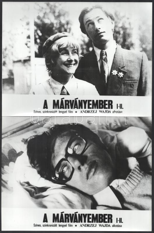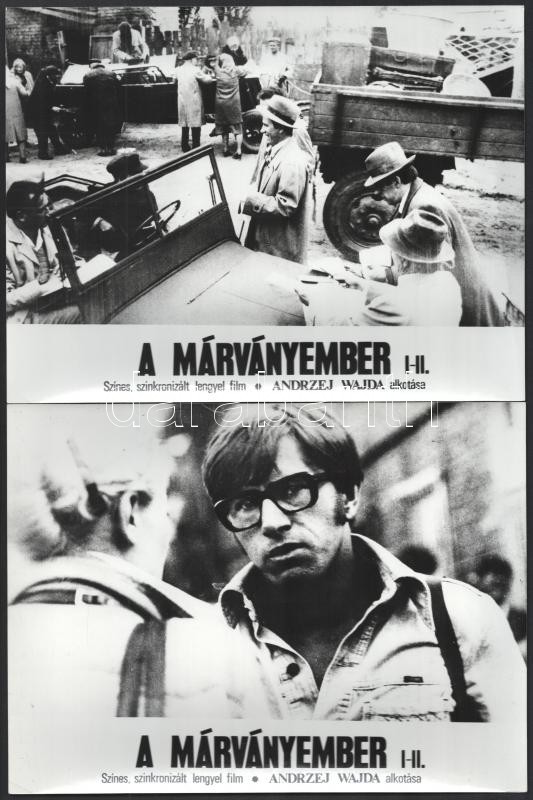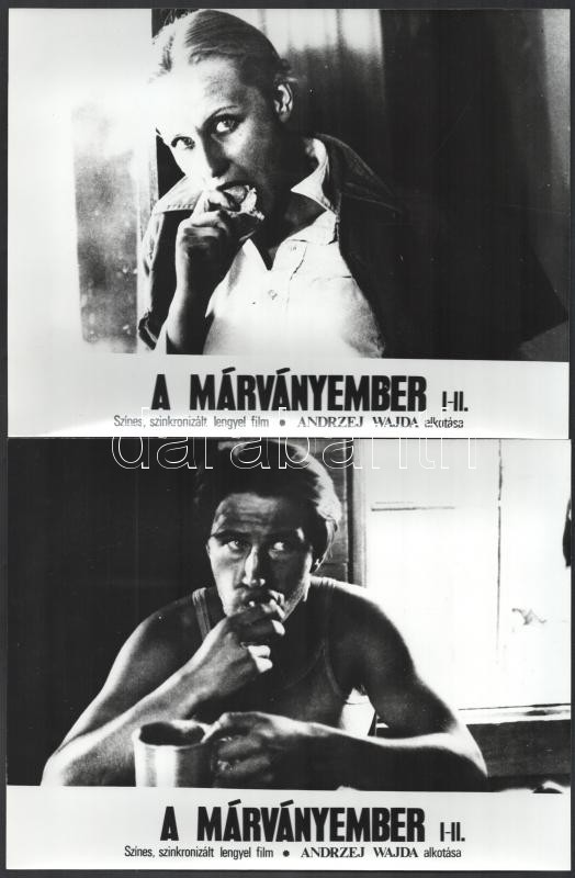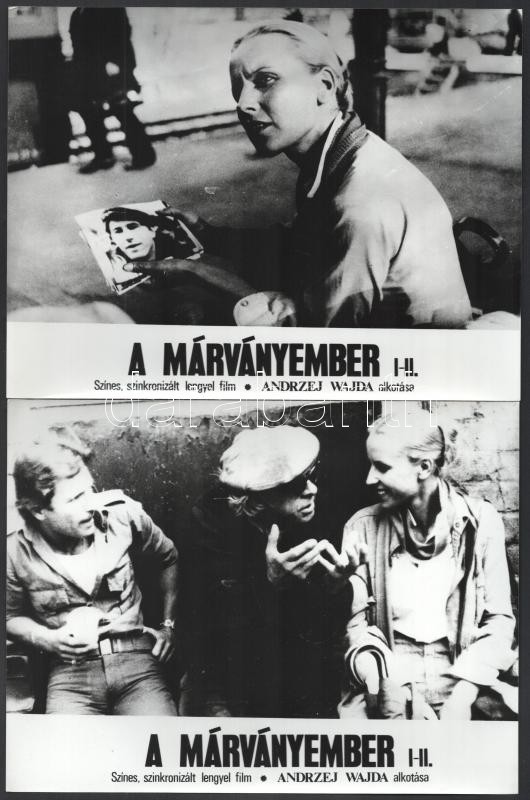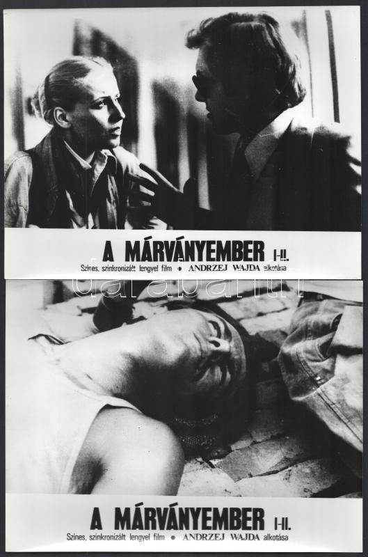 1977 Andrzej Wajda: ,,A márványember" című lengyel filmjének jelenetei és szereplői, 16 db vintage produkciós filmfotó, ezüst zselatinos fotópapíron, 18x24 cm