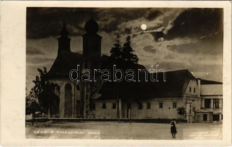 1932 Lőcse, Levoca; Gymnasiální kaple / Gimnáziumi kápolna / chapel https://www.darabanth.com/hu/418-Gyorsarveres/418.0/Kepeslapok/Felvidek~1500007/1932-Locse-Levoca-Gymnasialni-kaple-Gimnaziumi-kapolna-chapel~II2637285