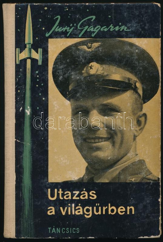 Jurij Gagarin: Utazás a világűrben. Az első űrhajós pilóta feljegyzései. Ford.: Rajna Béla. Bp., 1962, Táncsics. Kiadói félvászon-kötés, kissé sérült, kopott borítóval, néhány foltos lappal, tulajdonosi névbejegyzéssel.