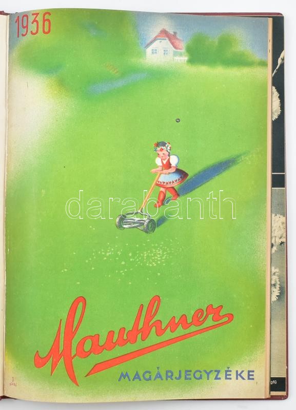1936 Mauthner magárjegyzéke. Bp., 1936., Globus, 88 p. A papírborító illusztrációja Debreceni Szabó István (1905-1990) munkája. Átkötött modern egészvászon-kötésben, bekötött papírborítókkal.
