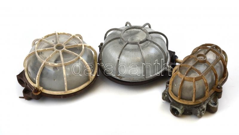 Leírás: 3 db régebbi elektromos ipari lámpa, loft lámpa
