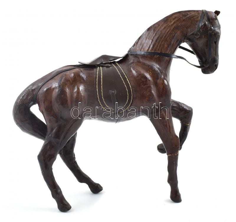 Leírás: Bőr borítású fa ló dísz figura 27x28 cm