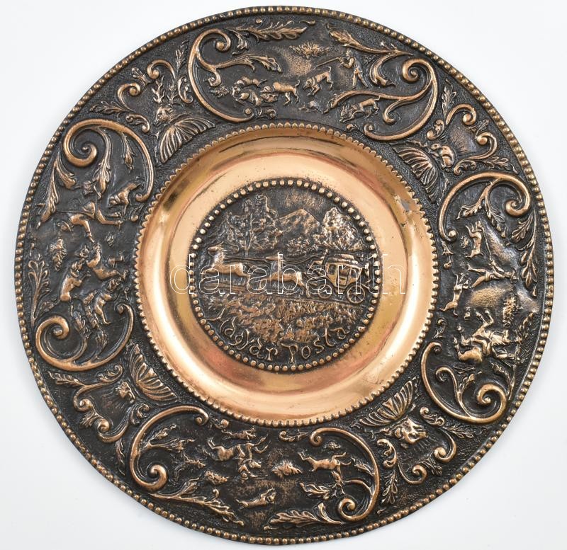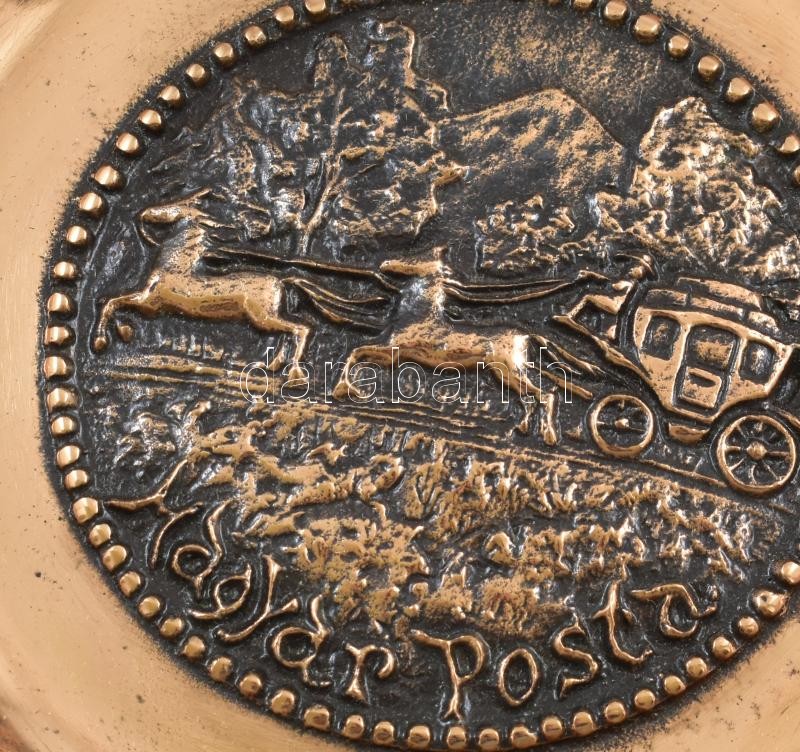 Leírás: "Magyar Posta" iparművész réz fali dísztál, d: 22 cm