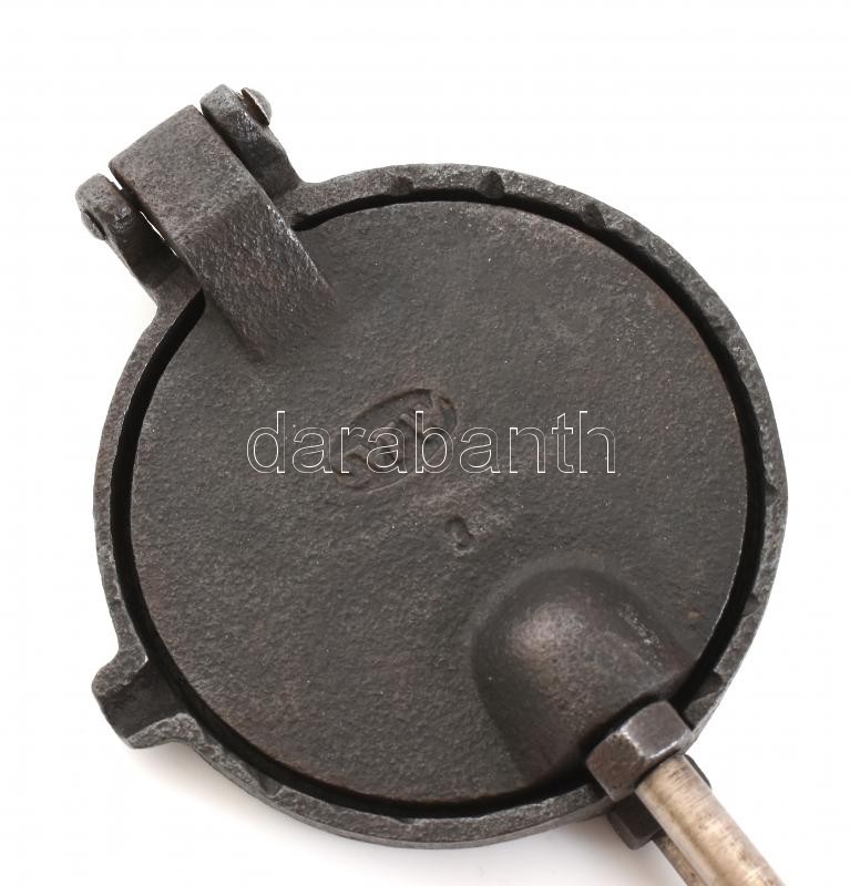 Régi öntöttvas, fém, fa, ostyasütő, kopott, h: 58 cm https://www.darabanth.com/hu/418-Gyorsarveres/418.0/Mutargy-papirregiseg-egyeb/Bolhapiac~500012/Regi-ontottvas-fem-fa-ostyasuto-kopott-h-58-cm~II2637846