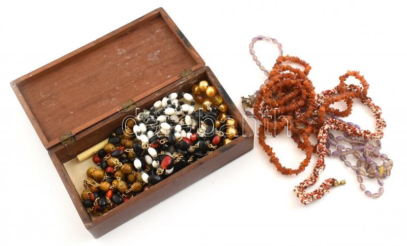 Leírás: Vegyes bizsu tétel fa ládikában (fedele lejár)