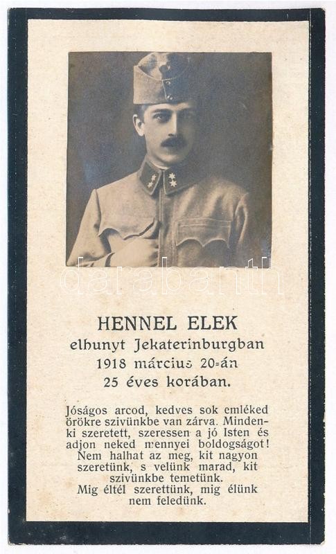 1918 Jekatyerinburgban elhunyt katona gyászlapja https://www.darabanth.com/hu/418-Gyorsarveres/418.0/Mutargy-papirregiseg-egyeb/Militaria~500029/1918-Jekatyerinburgban-elhunyt-katona-gyaszlapja~II2634797
