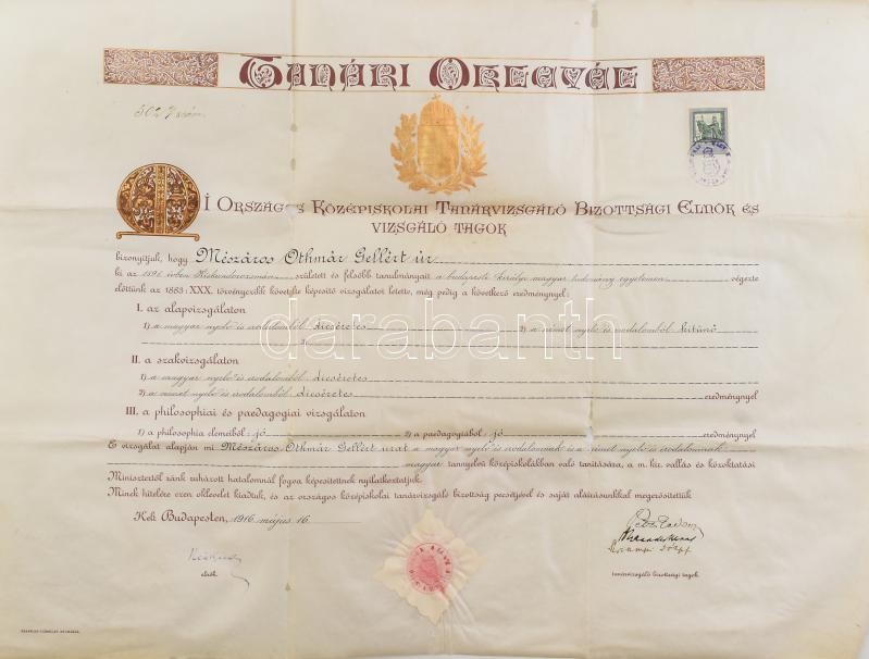 1916 Pergamen oklevél Beöthy Zsolt (1848-1922), Petz Gedeon (1863-1943... https://www.darabanth.com/hu/418-Gyorsarveres/418.0/Mutargy-papirregiseg-egyeb/Okmanyok~500018/1916-Pergamen-oklevel-Beothy-Zsolt-1848-1922-Petz-Gedeon-1863-1943-es-Szinnyei-Jozsef-1857~II2637318