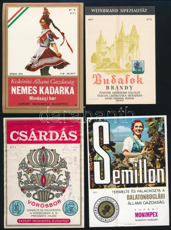 Leírás: 8 db magyar retró italcímke, közte Monimpex