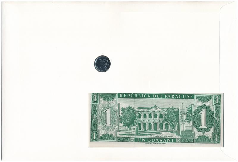 Paraguay "Chaco katona" érmés és bankjegyes, pecsételt boríték benne 1...