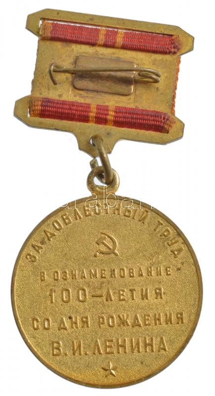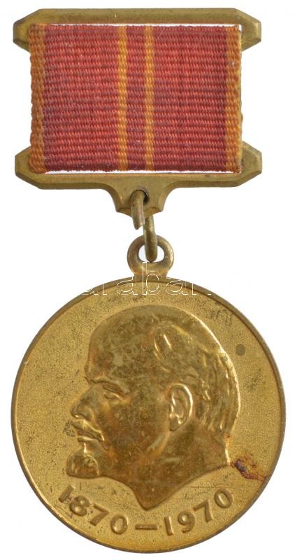 Szovjetunió 1970. "Lenin születésének 100. évfordulója" kétoldalas, aranyozott kitüntetés szalagon T:2-