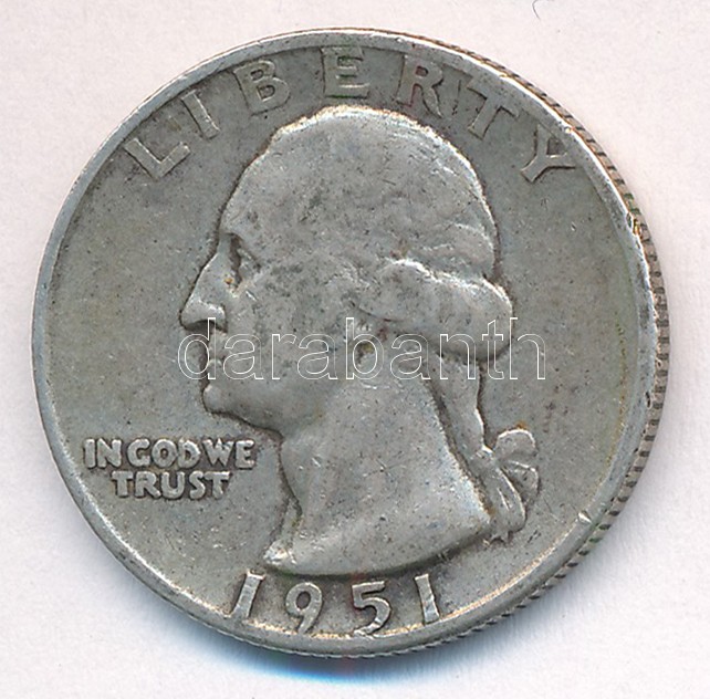 USA 1951D 25 Cents... https://www.darabanth.com/hu/418-Gyorsarveres/418.0/Numizmatika/Kulfoldi-fem-es-ezustpenzek~2000015/Amerikai-Egyesult-Allamok-1951D-25c-Ag-T2-patina-USA-1951D-25-Cents-Ag-CVF-patina-Krause-KM231~II2621979