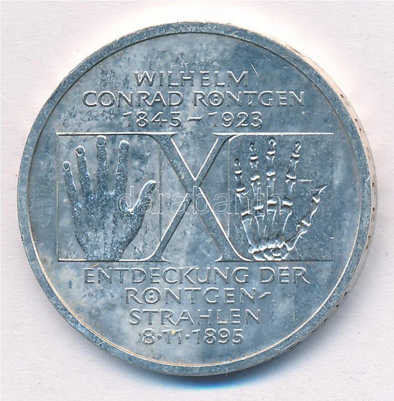 Németország 1995D 10M Ag "150 éve született Wilhelm Conrad Röntgen - 100 éves a Röntgen-sugár" T:1- Germany 1995D 10 Mark Ag "150th Birth Anniversary - Wilhelm Conrad Röntgen - 100th Anniversary of X-ray" C:AU Krause KM# 187