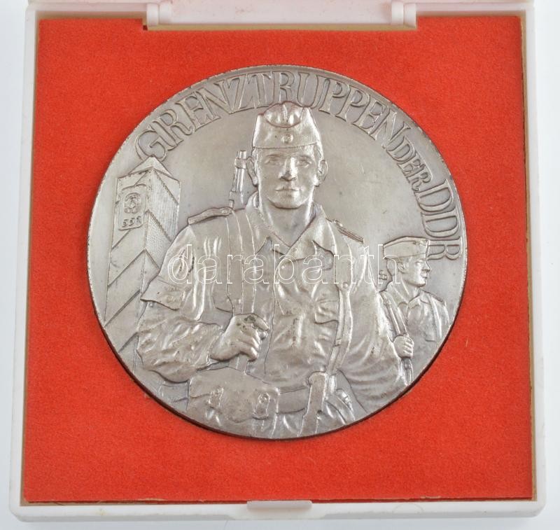 NDK ~1970. "A Német Demokratikus Köztársaság Határőrsége" kétoldalas, ezüstözött fém emlékérem eredeti tokban (60mm) T:1-