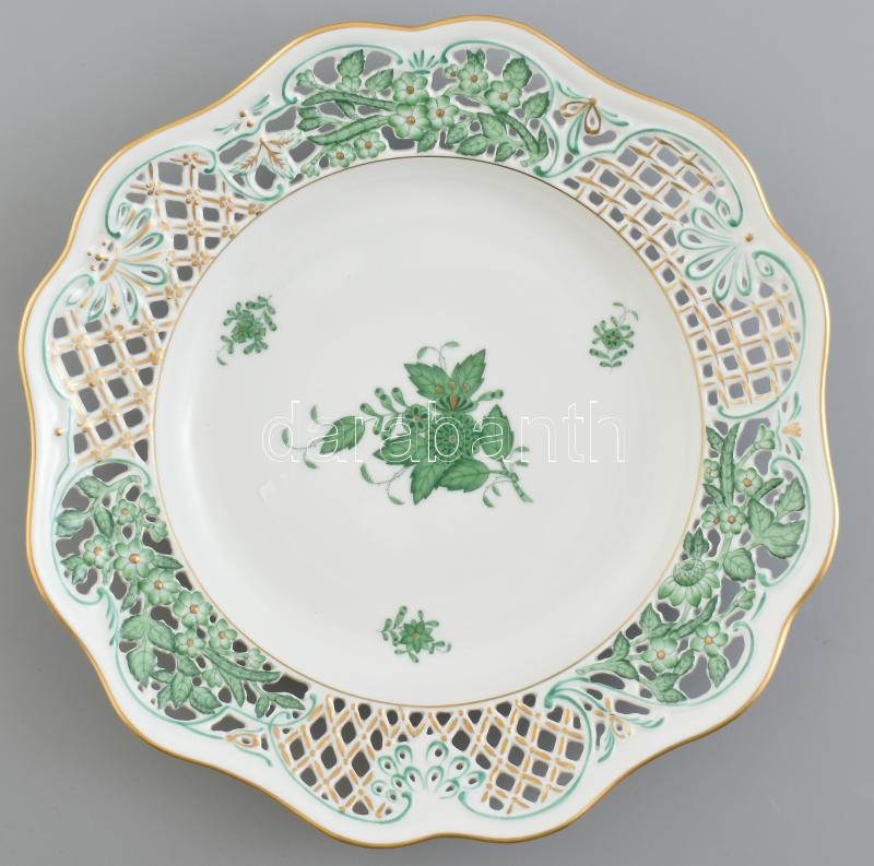 Herendi Apponyi mintás áttört tányér, kézzel festett, jelzett, hibátla... https://www.darabanth.com/hu/418-Gyorsarveres/418.0/Porcelan-keramia-uveg/Porcelan~500006/Herendi-Apponyi-mintas-attort-tanyer-kezzel-festett-jelzett-hibatlan-d-26-cm~II2640103