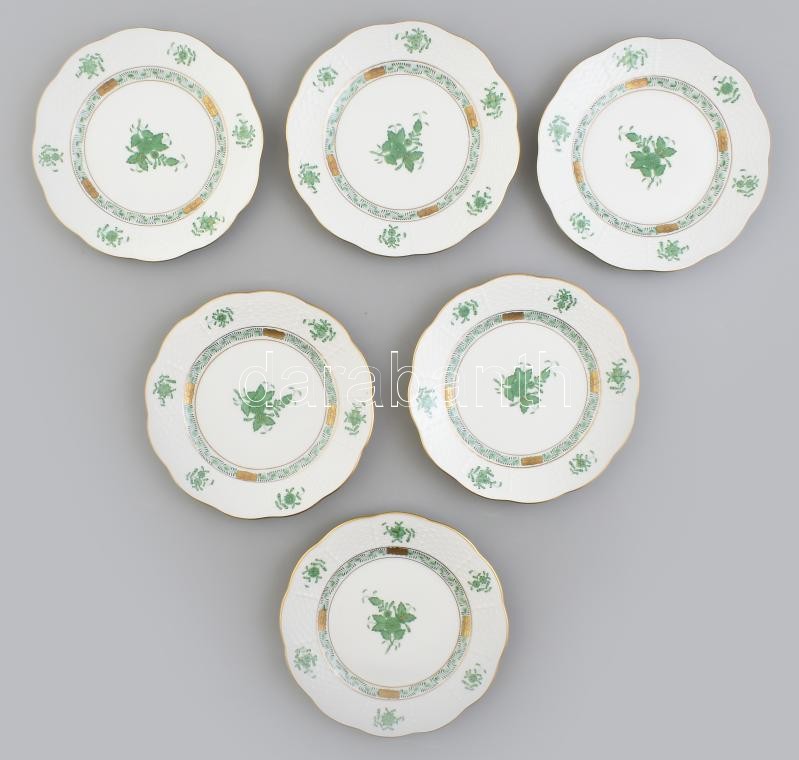Leírás: Herendi Apponyi mintás porcelán süteményes tányérok, 6 db, kézzel festett, jelzett, hibátlan, d: 16 cm