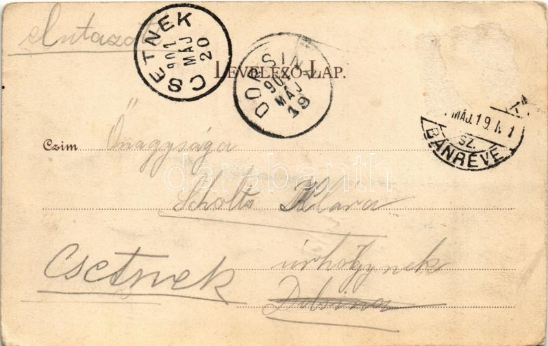 1901 Krasznahorkaváralja, Krásnohorské Podhradie; Krasznahorka vára, Szövetkezeti vendéglő. K. H. Váraljai Fogyasztási szövetkezet saját kiadása. Vogel D. felvétele / Hrad Krásna Horka / castle, inn, restaurant. Art Nouveau, floral (Rb)