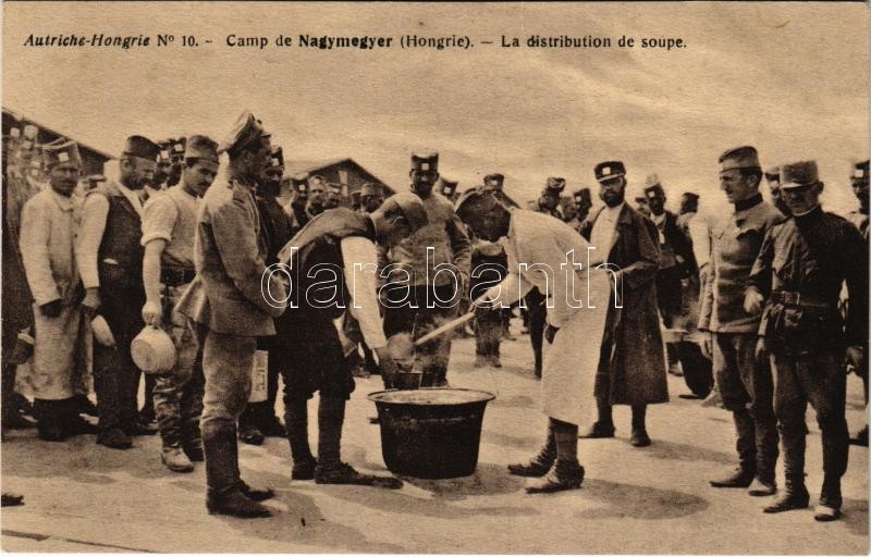 Nagymegyer, Velky Meder, Calovo; Cs. és kir. hadifogolytábor, leves osztás. Francia kiadás Autriche-Hongrie Camp, La distribution de soupe / WWI K.u.k. military POW camp, soup distribution