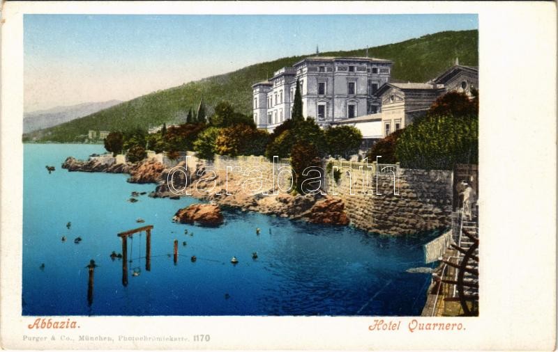 Abbazia, Opatija; Hotel Quarnero (EK) https://www.darabanth.com/hu/419-Gyorsarveres/419.0/Kepeslapok/Horvatorszag~1500009/Abbazia-Opatija-Hotel-Quarnero-EK~II2644114